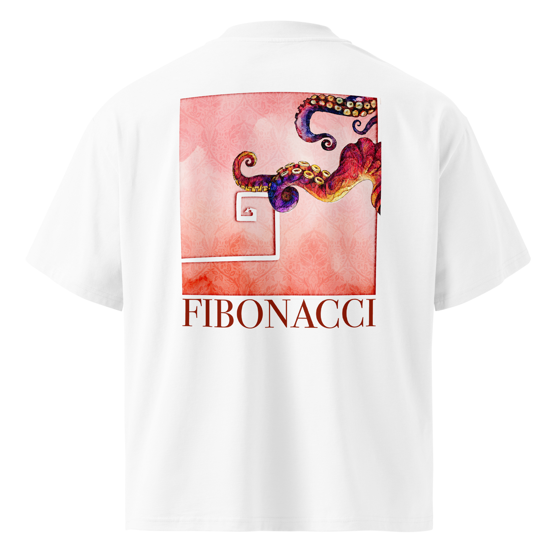At the heart of the design, the Fibonacci spiral bursts open and transforms into a living kraken. Its tentacles unfurl outward like new ideas, new species, new futures reaching into the unknown. Every arm is a different expression of the same creative force, the same way one seed becomes forests, minds, waves, and worlds.